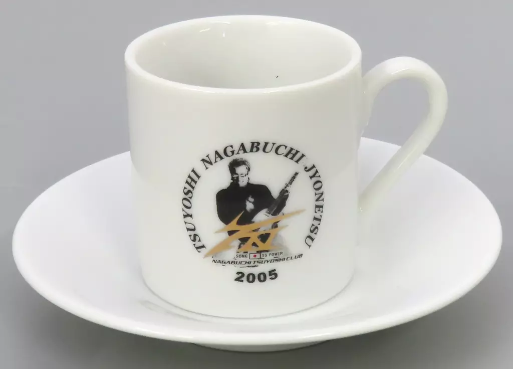 This is a cup and saucer with the logo of the official fan club "Tsuyoshi Club" printed on it.