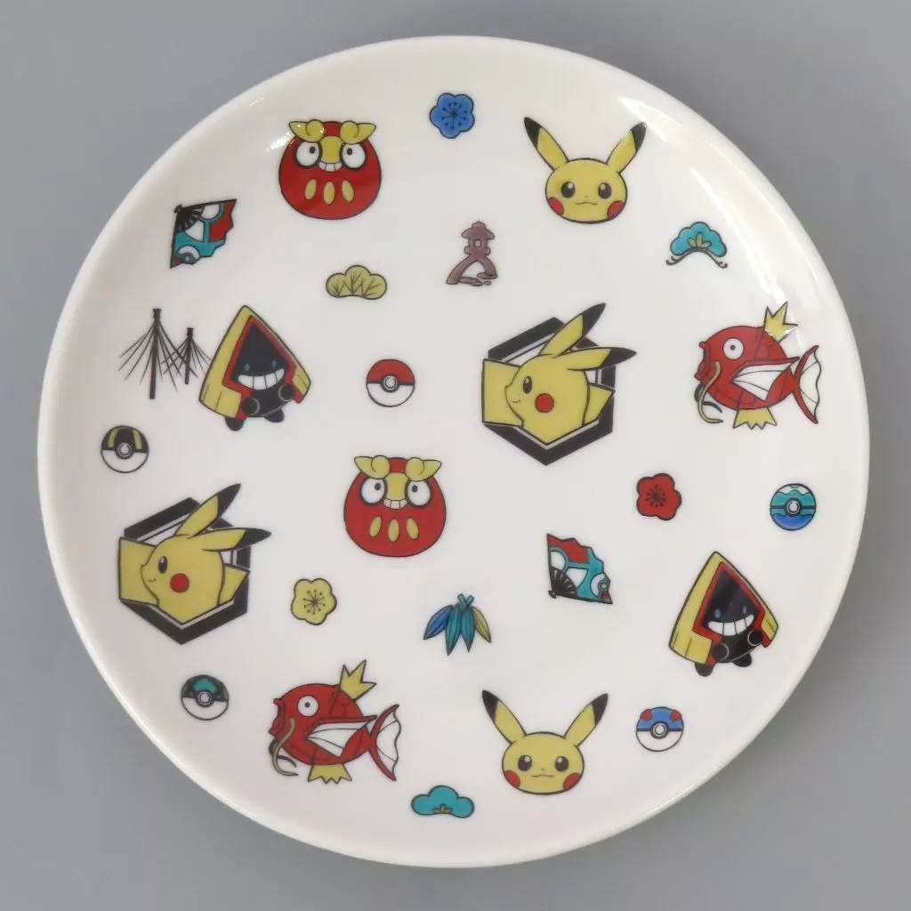 On a round plate with diameters of 15 cm that is easy to use on a daily basis, there are illustrations with motifs of auspicious Pocket Monsters such as Dal Maka and Coking, Kotoji Toro that is unique to Kanazawa, and Yukizukuri!