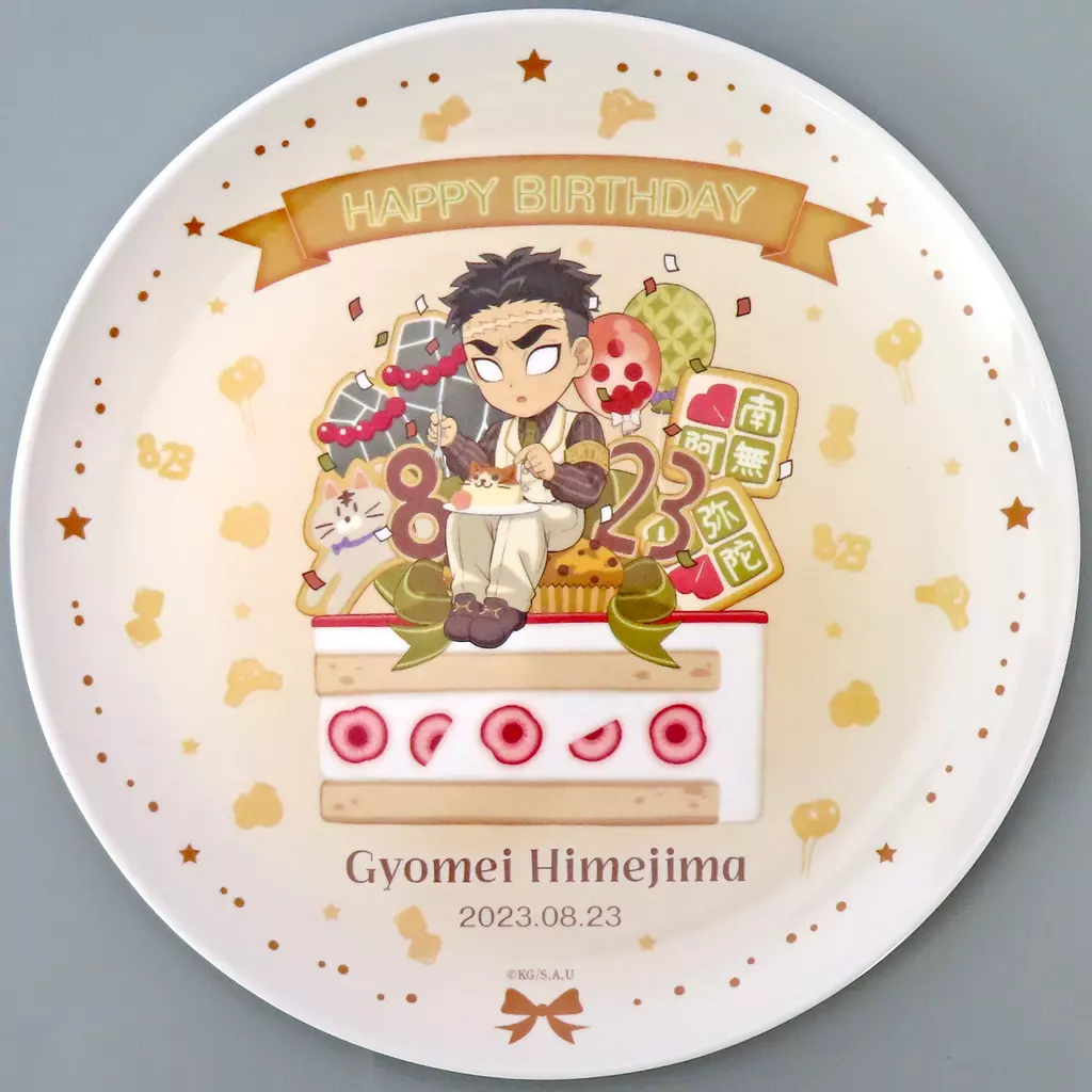 This is a melamine plate for "Demon Slayer: Kimetsu no Yaiba ufotable Cafe / Machi ★ Asobi Cafe Gyomei Himejima Birthday Festival 2023" goods.