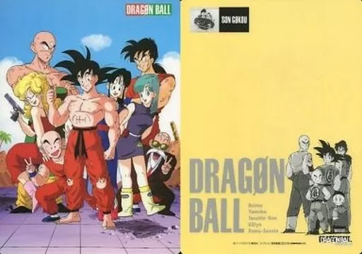 On the front, there are paintings of Sun Wukong, Kuririn, Yamcha, Crabmeat Omelet on Rice, Turtle Hermit, Chichi and Lunch, and on the back, there are paintings of Sun Wukong, Kuririn, Yamcha, Crabmeat Omelet on Rice and dumplings.