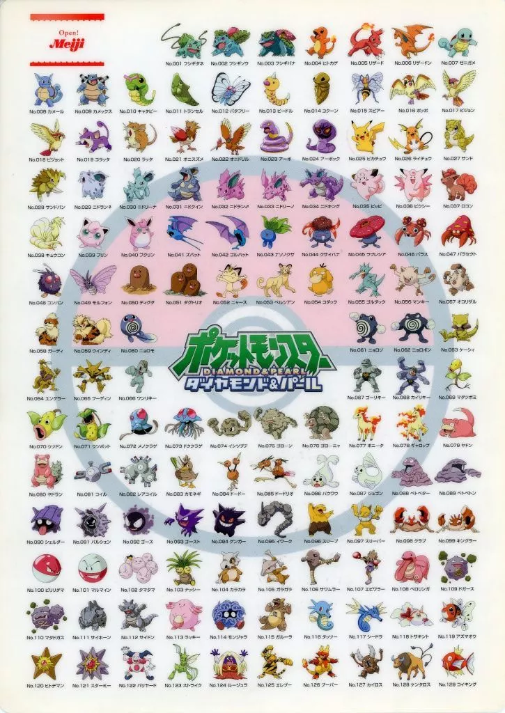 B5 Underlay with a list of Pocket Monsters from No. 001 (Bulbasaur) to No. 251 (Celebe).