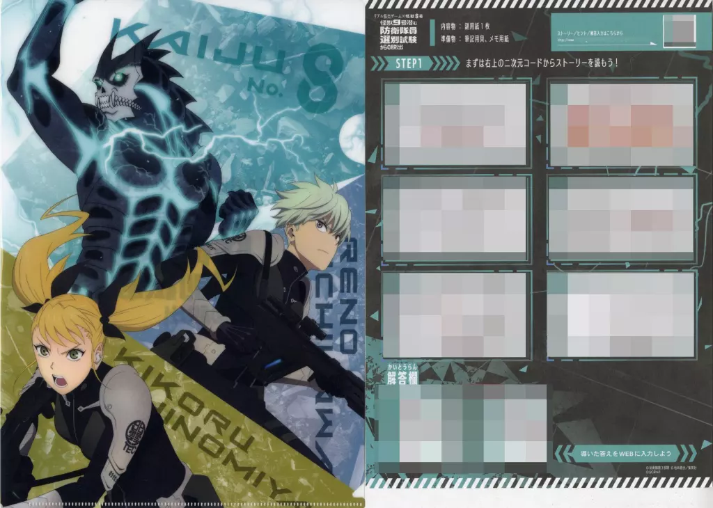 Product explanation ■ "Kaiju 8 x Real escape the room Kaiju 9 Escape from Hidden Defense Personnel Selection Examination" goods "plastic trasparent file folder with mystery".