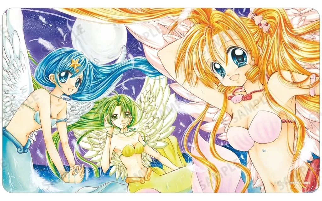Color illustrations of Ruchia, Hatsune, and Rina are used to create a multi-desk mat.
