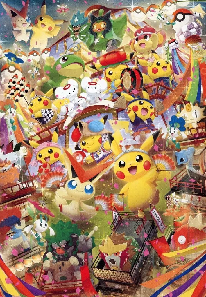 It is designed with Pokémon people enjoying the festival.