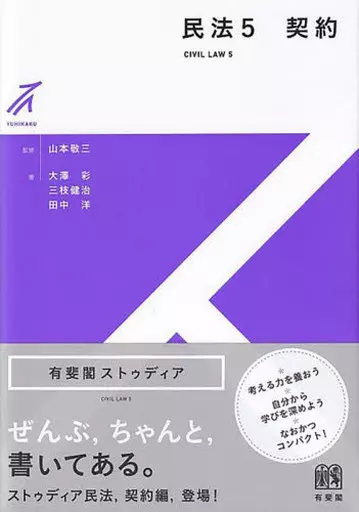 Yuhikaku ストゥディア / For readers who are learning contract law for the first time. This book aims to convey the foundation of contract law in an easy-to-understand way. It uses a lot of diagrams and examples. It can be read smoothly with explanations that do not skip the logic steps. You can cross the vast sea of civil law. The most reliable sea map and ストゥディア Civil Law Volume 5.