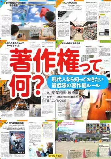 Most works are protected by the Copyright Law. There is a possibility that they are violating the law in school and everyday life. (1) Things you can't listen to now. (2) Our lives and copyrights. (3) What happens in this case? (37 specific examples such as the copyright that teachers study, the copyright that they want to teach to adults, and the copyright that keeps society alive.) It is explained in an easy-to-understand way.