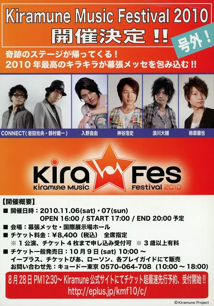 Japanese title: 販促品 演劇 フライヤー)号外! Kiramune Music Festival 2010 開催決定!! 奇跡のステージが帰ってくる!(神谷浩史と入野自由によるユニット「KamiYU」の初イベントが豪華2枚組DVDで発売決定!!2010.11.26リリース!!)