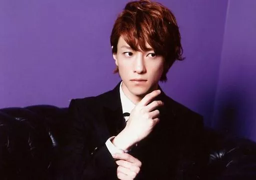 Japanese title: 生写真(男性)/俳優 鈴木拡樹/横型・バストアップ・衣装黒・右手上げ・視線右・背景紫/イベント「いんぷろ by拡樹III」ブロマイド