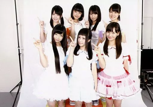 Official photo (female) / idol / palet Palet / Assembly (7 persons) / Horizontal, Above-the-knee, Costume white, red, orange, fingers of the right hand holder / Official Official photo