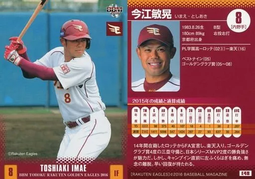 Japanese title: BBM/レギュラーカード/BBM2016 東北楽天ゴールデンイーグルス E48[レギュラーカード]:今江敏晃