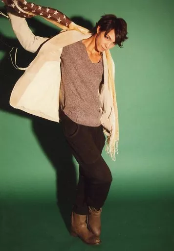 Official photo (male) / actor Kyosuke Hamao / Whole Body / Beige Costume / Right Hand Stole / Right Facing / Bent Right Foot / Green Background / "Kyosuke Hamao Xmas Talk Event" Venue Limited Official photo