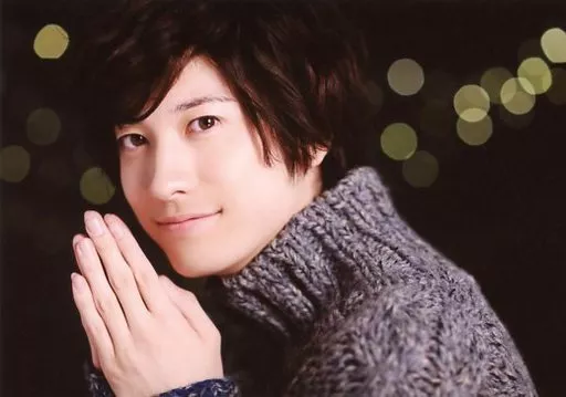 Japanese title: 生写真(男性)/俳優 山本一慶/横型・バストアップ・衣装グレー・ニット・左向き・両手合わせ・口閉じ・背景黒/「河合龍之介&山本一慶の仲良しトークライブ」物販生写真