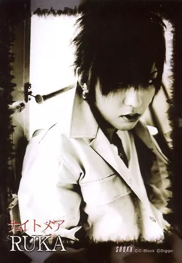 Japanese title: 生写真(男性)/ヴィジュアル系バンド/ナイトメア ナイトメア/瑠樺(RUKA)/上半身・体右向き・モノクロ仕様・ロゴ入り「SHOXX」/デジフォト