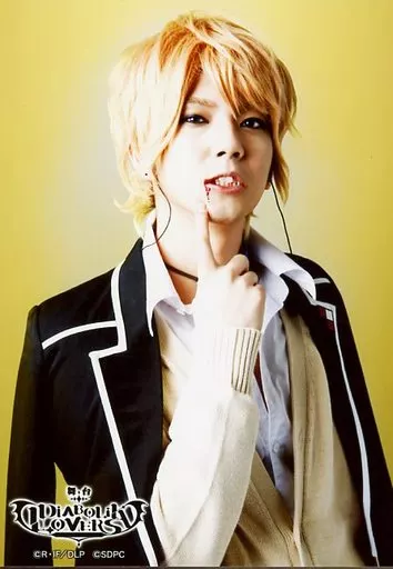 Official photo (male) / actor Yuya Asato (Shu Sakamaki) / Kneecap / Background yellow / Character actor shot / Stage 「 DIABOLIK LOVERS 」 random bromide