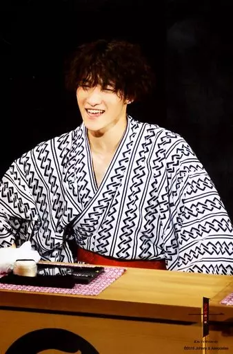 Snow Man / Hikaru Iwamoto / Live Photo / Upper Body / Seated / Kimono White / Black / Front Panel / Open Mouth / Background Black / 2L Size / Takizawa Kabuki 10th Anniversary