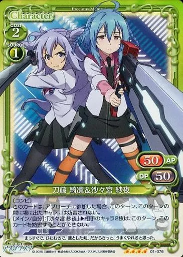 Japanese title: プレシャスメモリーズ/SR/キャラクター/緑/学戦都市アスタリスク ブースターパック 01-076[SR]:(ホロ)刀藤 綺凛&沙々宮 紗夜