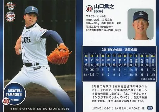 Japanese title: BBM/レギュラーカード/BBM2016 埼玉西武ライオンズ L23[レギュラーカード]:山口嵩之