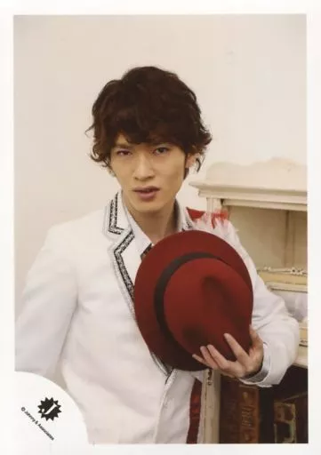 Official photo (Johnnys) / idol / Snow Man Snow Man / Tatsuya Fukazawa / Upper Body / Costume White Red / Black Silver / Left Hand Hat Red / the left elbow Shelf / 15 Summer Takizawa Kabuki 10th Anniversary Singapore performance pamphlet photo off-shot / Official Official photo