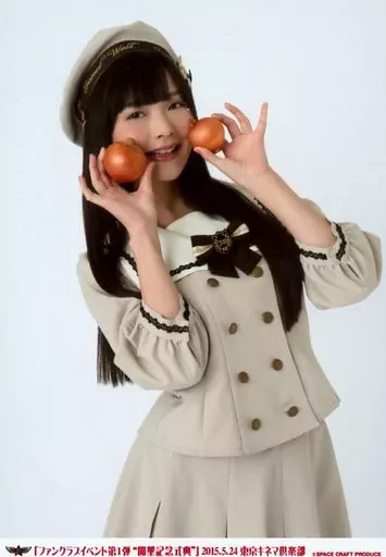 Official photo (female) / voice actor Sumire Uesaka / Kneecaps Knee / White Costume / Both Hands Onion / 「 Fan Club Event 1 st "Reclamation Memorial Ceremony" 」 2015.5.24 Tokyo Kinema Club 」 Fan Club member limited sale 『 Colgyoku representative photo set 』