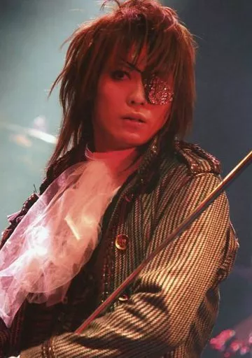 Japanese title: 生写真(男性)/ヴィジュアル系バンド/Moran Moran/Hitomi/ライブフォト・上半身・衣装黒.白・左目眼帯・ライト赤/生写真