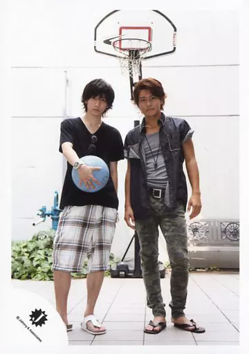 Johnnys Jr. / Kyomoto Oga, Shintaro Morimoto / Whole body, Kyomoto right hand ball, costume black, basket goal behind / Official Official photo