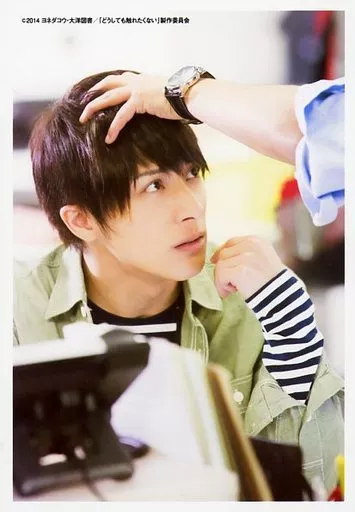 Japanese title: 生写真(男性)/俳優 米原幸佑(嶋俊亜紀)/バストアップ・衣装カーキ・黒・白・ボーダー・目線左/映画「どうしても触れたくない」試写会会場限定ブロマイド