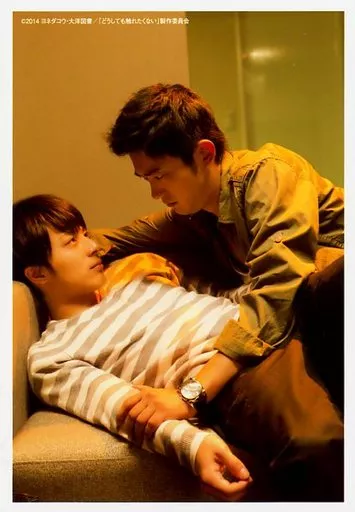 Official photo (male) / actor Kosuke MAIBARA (Aki Shimashun), Masashi Taniguchi (Yosuke Tokawa) / Knee-Up, Sitting, Costume Grays, Whites, Borders, Gazing / Eiga 「 I don't want to touch 」 Preview Hall Limited Bromide