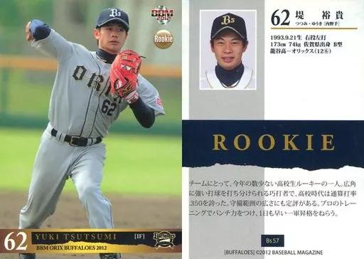Japanese title: BBM/レギュラーカード/オリックス・バファローズ/BBM2012 オリックス・バファローズ Bs57[レギュラーカード]:堤裕貴