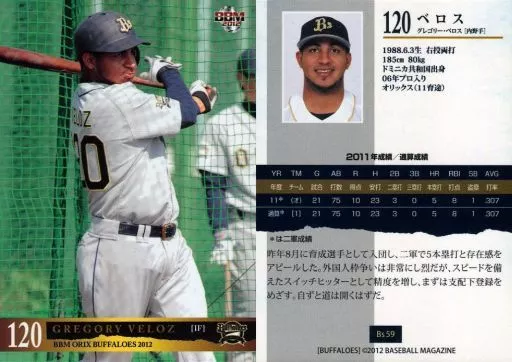 Japanese title: BBM/レギュラーカード/オリックス・バファローズ/BBM2012 オリックス・バファローズ Bs59[レギュラーカード]:ベロス