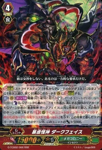 Japanese title: ヴァンガード/RRR/Gユニット/メガコロニー/ヴァンガードG テクニカルブースター 第2弾「The GENIUS STRATEGY」 G-TCB02/006[RRR]:暴虐怪神 ダークフェイス