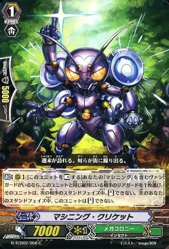 Japanese title: ヴァンガード/C/ノーマルユニット/メガコロニー/ヴァンガードG テクニカルブースター 第2弾「The GENIUS STRATEGY」 G-TCB02/058[C]:マシニング・クリケット