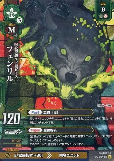 Japanese title: ドレッドノート/SR/ユニット/緑/[DB-06]ブースターパック Chapter6 コード・ヴァナルガンド 3C-064[SR]:フェンリル