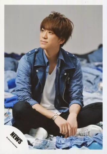 Japanese title: 生写真(ジャニーズ)/アイドル/NEWS NEWS/小山慶一郎/全身・座り・あぐら・衣装青・白・目線左・顔左向き・口閉じ/『恋を知らない君へ』PV&ジャケ写撮影/公式生写真