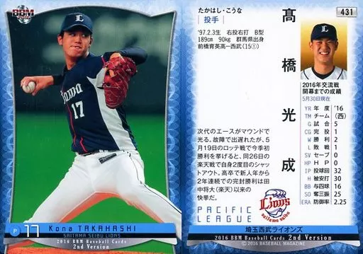 Japanese title: BBM/レギュラーカード/埼玉西武ライオンズ/BBM2016 ベースボールカード 2ndバージョン 431[レギュラーカード]:高橋光成