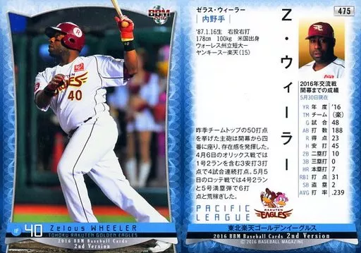 Japanese title: BBM/レギュラーカード/東北楽天ゴールデンイーグルス/BBM2016 ベースボールカード 2ndバージョン 475[レギュラーカード]:Z.ウィーラー