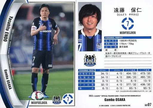 Japanese title: スポーツ/レギュラーカード/2015Jリーグオフィシャルトレーディングカード[チームエディション・メモラビリア]ガンバ大阪 GO07 [レギュラーカード] : 遠藤保仁