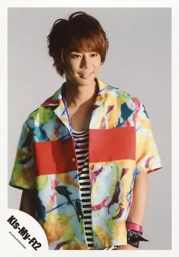 Japanese title: 生写真(ジャニーズ)/アイドル/Kis-My-Ft2 Kis-My-Ft2/北山宏光/上半身・衣装赤・緑・黄色・白・黒・ボーダー・右向き・歯見せ・背景グレー/「Sha la la☆Summer Time」PV&ジャケ写撮影/公式生写真