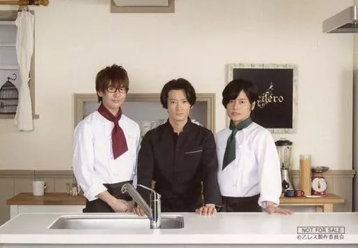Japanese title: 生写真(男性)/声優 集合(3人)/横型・膝上・衣装白黒赤緑・キッチン/DVD「東京乙女レストラン Vol.3」アニメイト限定版予約特典ブロマイド