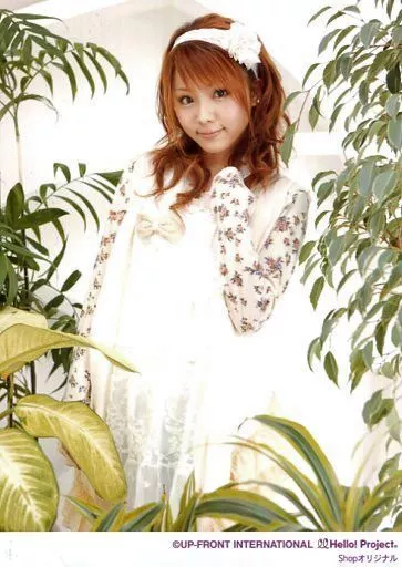 Japanese title: 生写真(ハロプロ)/アイドル/モーニング娘。 モーニング娘。/田中れいな/膝上・衣装白・花柄・カチューシャ・左手上げ・植物・背景白・2Lサイズ/Shopオリジナル