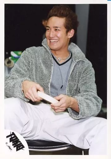 Japanese title: 生写真(ジャニーズ)/アイドル/TOKIO TOKIO/松岡昌宏/膝上・座り・衣装グレー・ズボン白・両手小物・顔左向き・笑顔/公式生写真