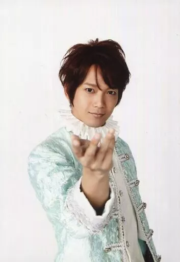 Japanese title: 生写真(男性)/俳優 辻本祐樹(伊東マンショ)/上半身・衣装白・水色・右手上げ・体右向き・キャラクターショット/舞台『僕たち天正遣欧少年使節』