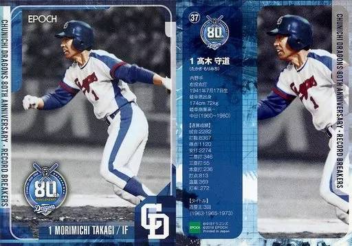 Japanese title: スポーツ/レギュラーカード/中日ドラゴンズ/2016 中日ドラゴンズ80周年記念 RECORD BREAKERS 037 [レギュラーカード] : 高木守道