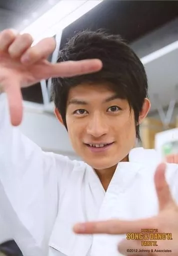 Japanese title: 生写真(ジャニーズ)/アイドル/ふぉーゆー ふぉーゆー/松崎祐介/バストアップ・衣装白・両指でフレーム/PLAYZONE’12 SONG & DANC’N PARTII