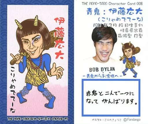 Japanese title: コレクションカード(男性)/THE MOMO-TARO Character Card 008:こりゃめでてーな/伊藤広大(青鬼)/裏面プロフィール・印刷メッセージ入り/THE MOMO-TARO Character Card
