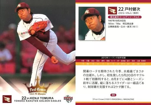 BBM / Regular Card / Tohoku Rakuten Golden Eagles / BBM2013 Tohoku Rakuten Golden Eagles League -First Crown - 05 [Regular Card] : Kenji Tomura
