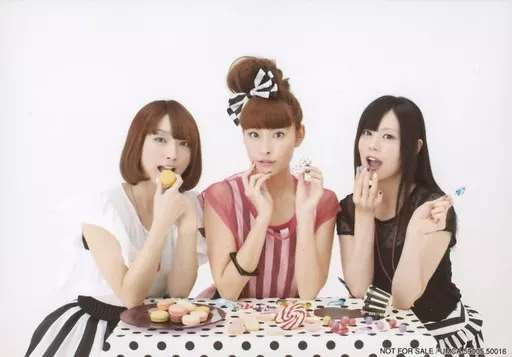 Japanese title: 生写真(女性)/声優/Sweety Sweety/長谷川唯・高木友梨香・竹之内彩/横型・上半身・座り・長谷川右手顎・高木右手マカロン・口元・竹之内口開き/CD「UNLUCKY GIRL!!」(UMCA-59005,50016)特典ブロマイド