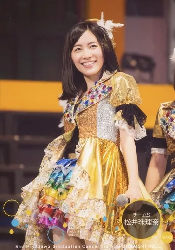 Jurina Matsui / Live Photo / Above Knee / Costume Gold / Rainbow Color / Left Hand Microphone / Body Left / Right Eye / DVD / BD 「 Don't cry, everyone. Sae Miyazawa Graduation Concert in NGK Hall 」 AKB Group Shop Limited Advanced Reservation Campaign Special Recommended Camera Official photo