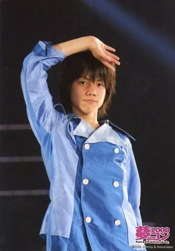 Japanese title: 生写真(ジャニーズ)/アイドル/7WEST 7WEST/重岡大毅/ライブフォト・上半身・衣装青・右手上げ・左手下・背景黒/夢コン2009