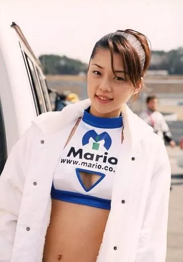 Japanese title: 生写真(女性)/グラビアアイドル 吉岡美穂/上半身・衣装白.青・顔傾げ・野外/生写真