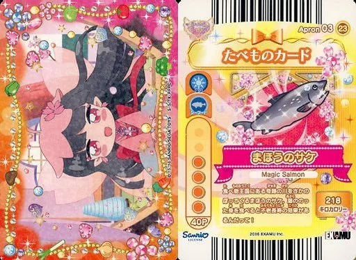 Japanese title: ハローキティとまほうのエプロン/ノーマル/たべものカード/新第3弾リルリルフェアリルとジュエルペットの魔法のエプロンデリシャス!2ndレシピ Apron03-23[ノーマル]:Rilu Rilu Fairilu/まほうのサケ